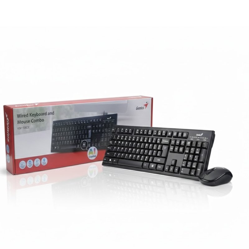 El Combo Teclado y Mouse Genius KM-100SE USB es un kit básico y funcional que ofrece lo esencial para tu estación de trabajo, ya sea en oficina, estudio o uso doméstico. El teclado brinda una escritura cómoda y respuestas precisas, mientras que el mouse óptico proporciona un desplazamiento fluido y exacto para navegación, diseño simple o tareas cotidianas.